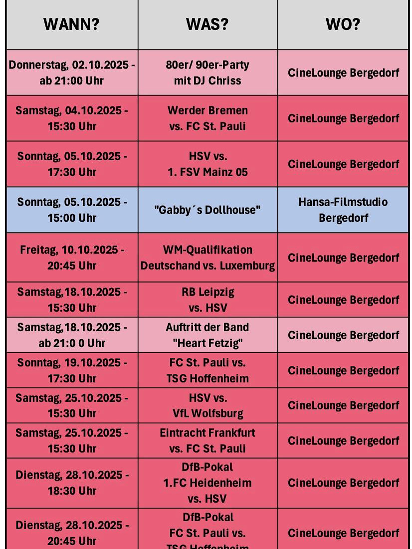 Hier findest du alle Event-Veranstaltungen für Oktober.