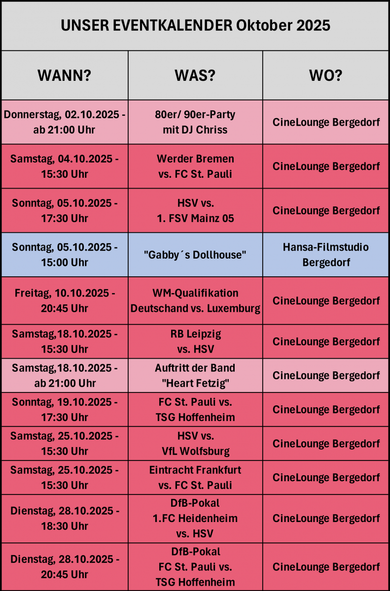 Hier findest du alle Event-Veranstaltungen für Oktober.